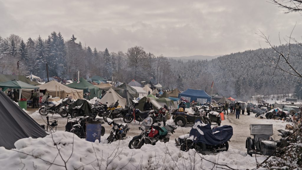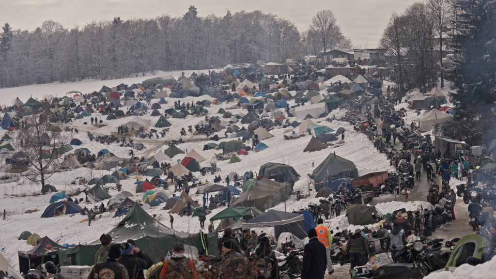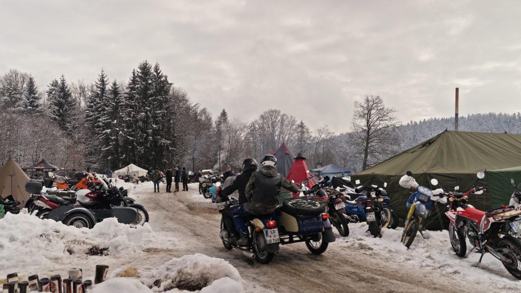 Was mich sofort überrascht hat: Schon am Eingang merkt man, dass das hier nicht wie ein klassisches Festival funktioniert. Es wirkt eher wie ein riesiges, offenes Lager – nur eben mit Motorrädern, Schnee und dieser ganz eigenen Ordnung im Chaos.
