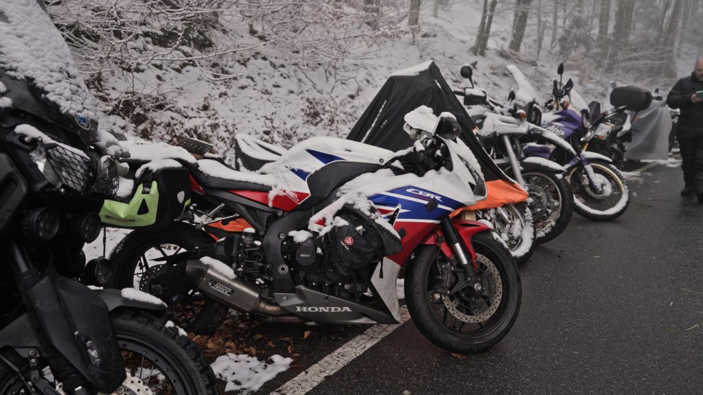 Und auch wenn man hört, dass es über die Jahre weniger wurde bzw. wird: Für mich bleibt es unfassbar, wie viele Biker es in den Bayerischer Wald zieht. Gerade im Winter. Gerade wegen der Bedingungen.