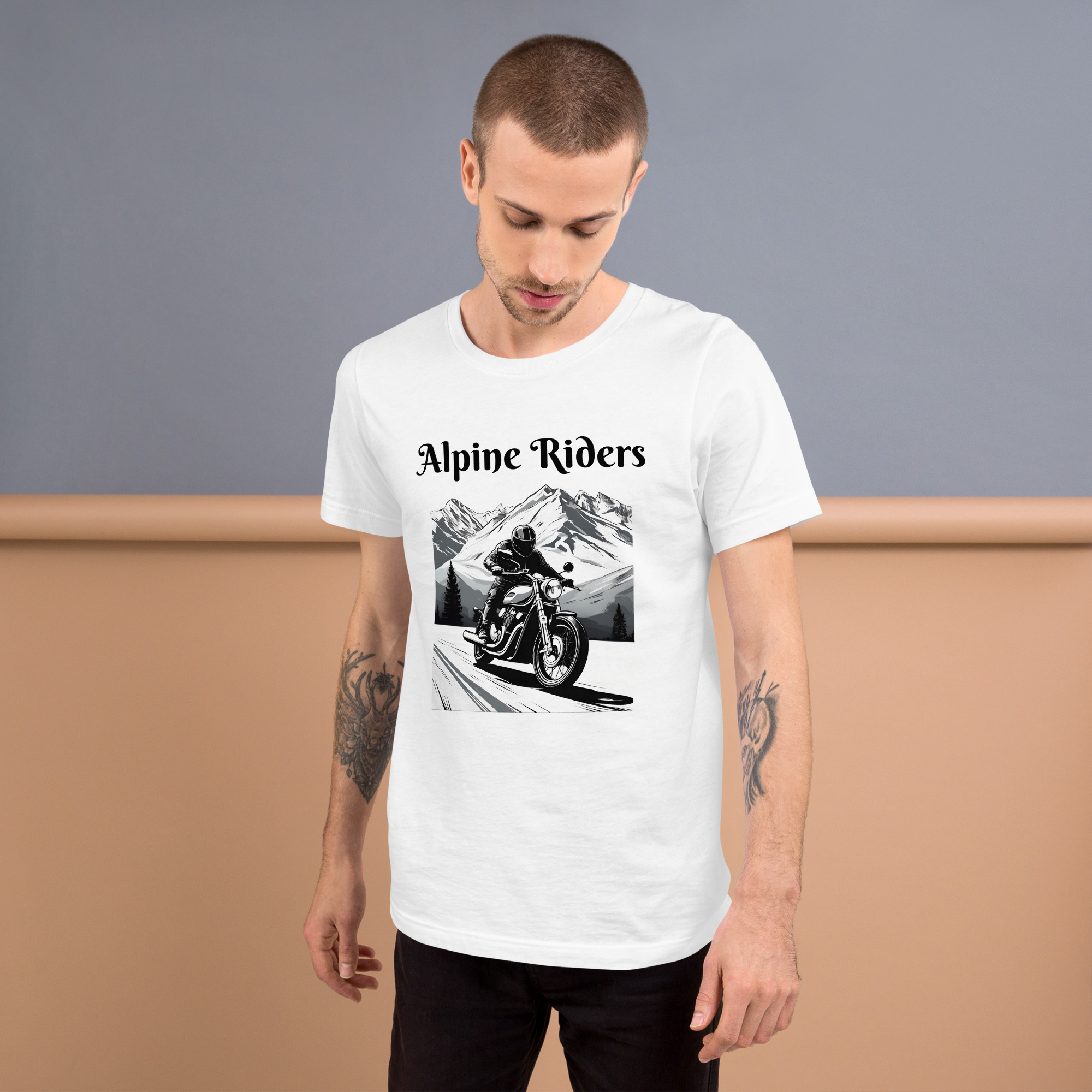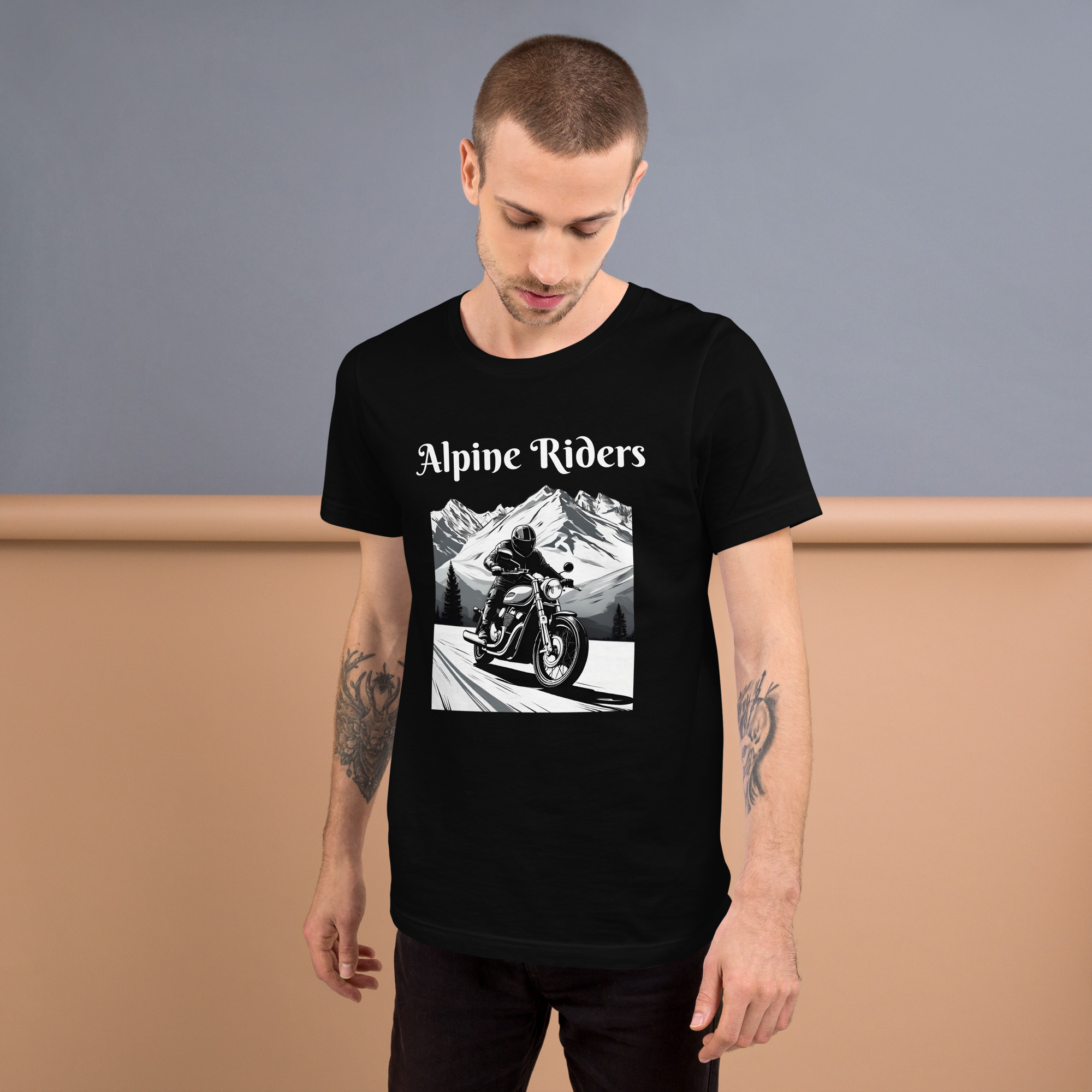 Dieses T-Shirt ist für diejenigen gemacht, die die Herausforderung suchen und die Freiheit der Berge auf zwei Rädern erleben wollen. Mit dem markanten Schriftzug ‚Alpine Riders‘ und dem Bild eines Motorradfahrers, der sich durch die majestätischen Gebirgsstraßen kämpft, verkörpert dieses Shirt den Geist des Abenteuers und der Entschlossenheit. Es ist eine Hommage an die Könige der Straße, die die Kurven und Serpentinen der Berge erobern und sich von nichts aufhalten lassen. Trage dieses Shirt und sei bereit, die Gipfel der Welt zu erklimmen und die unendliche Freiheit der Straße zu erleben.