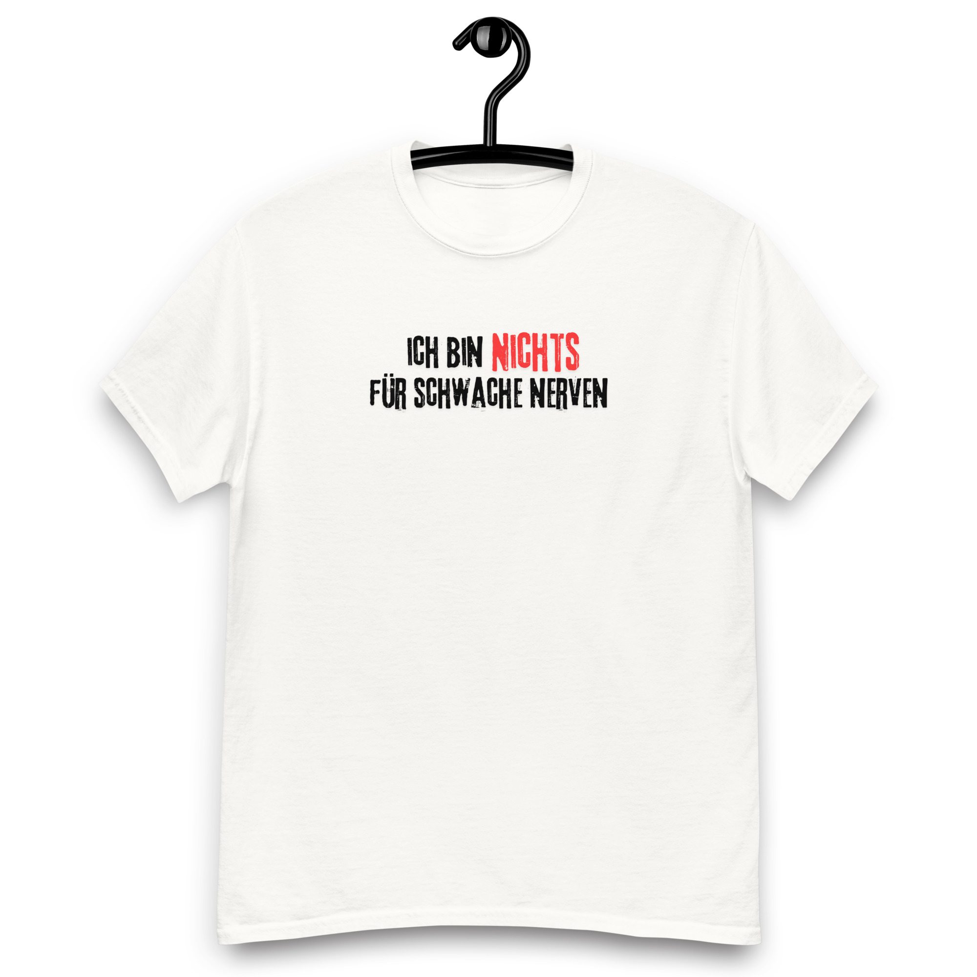 Der Spruch „Ich bin nichts für schwache Nerven“ setzt ein klares Statement – selbstbewusst, direkt und ein bisschen rebellisch.