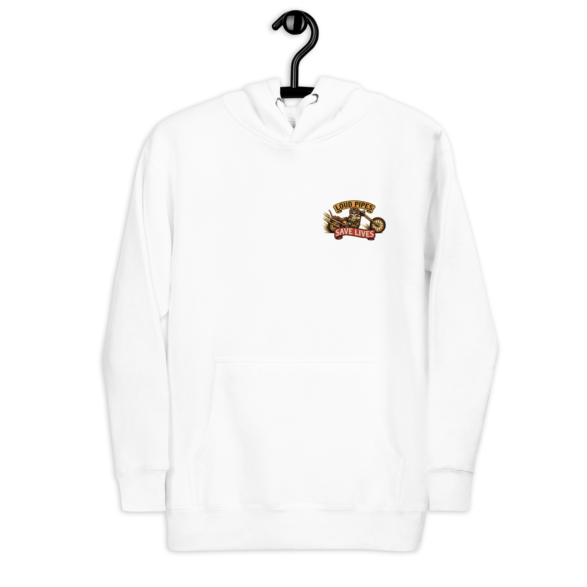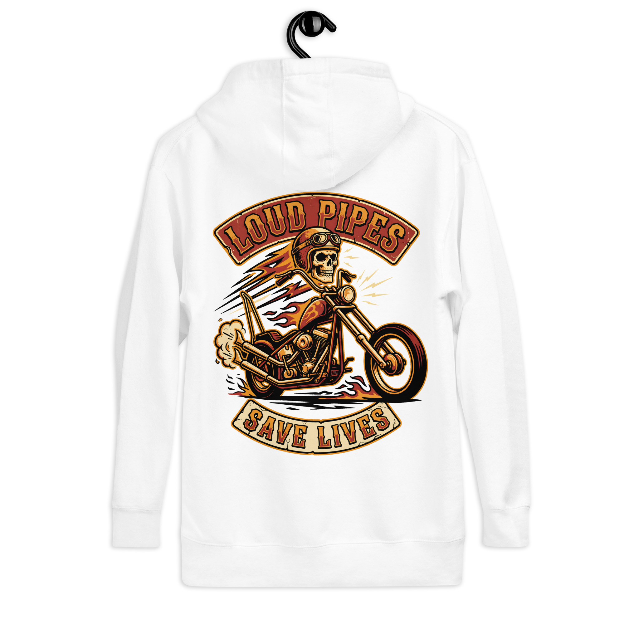 Der „Loud Pipes Save Lives“ Hoodie mit Front- und Backprint vereint Komfort, Funktion und starken Biker-Style.
