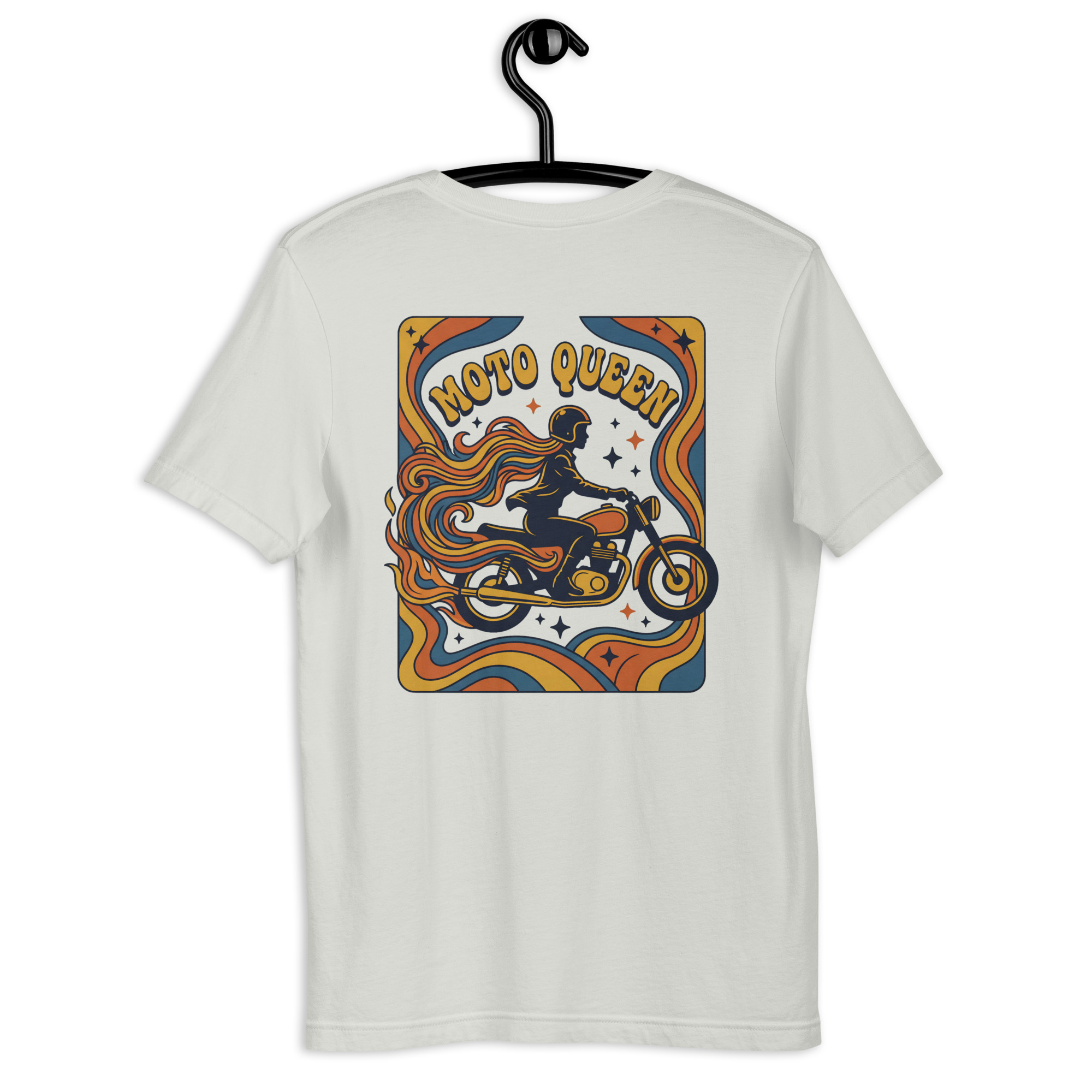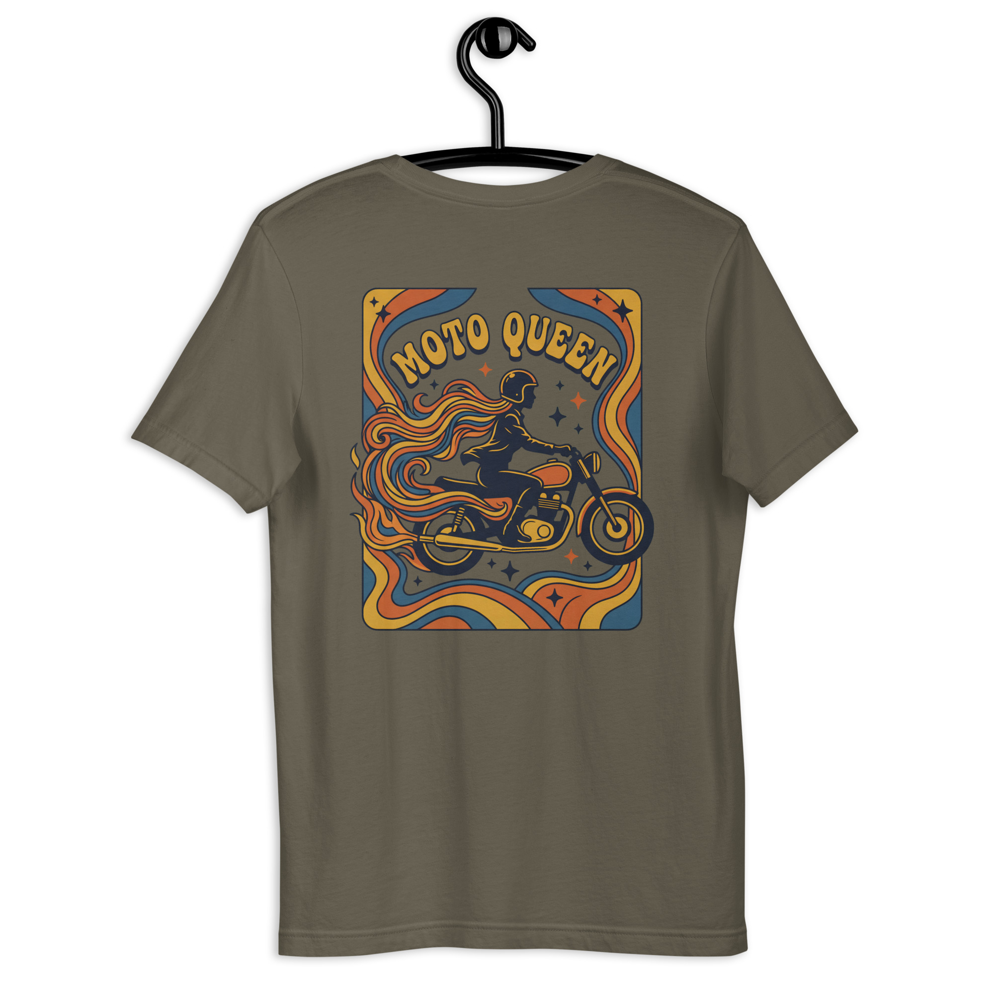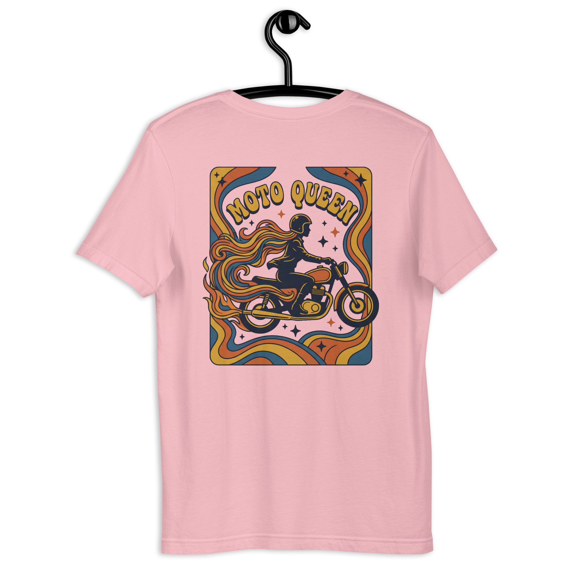 Auf der Vorderseite befindet sich der geschwungene Schriftzug „Moto Queen“.