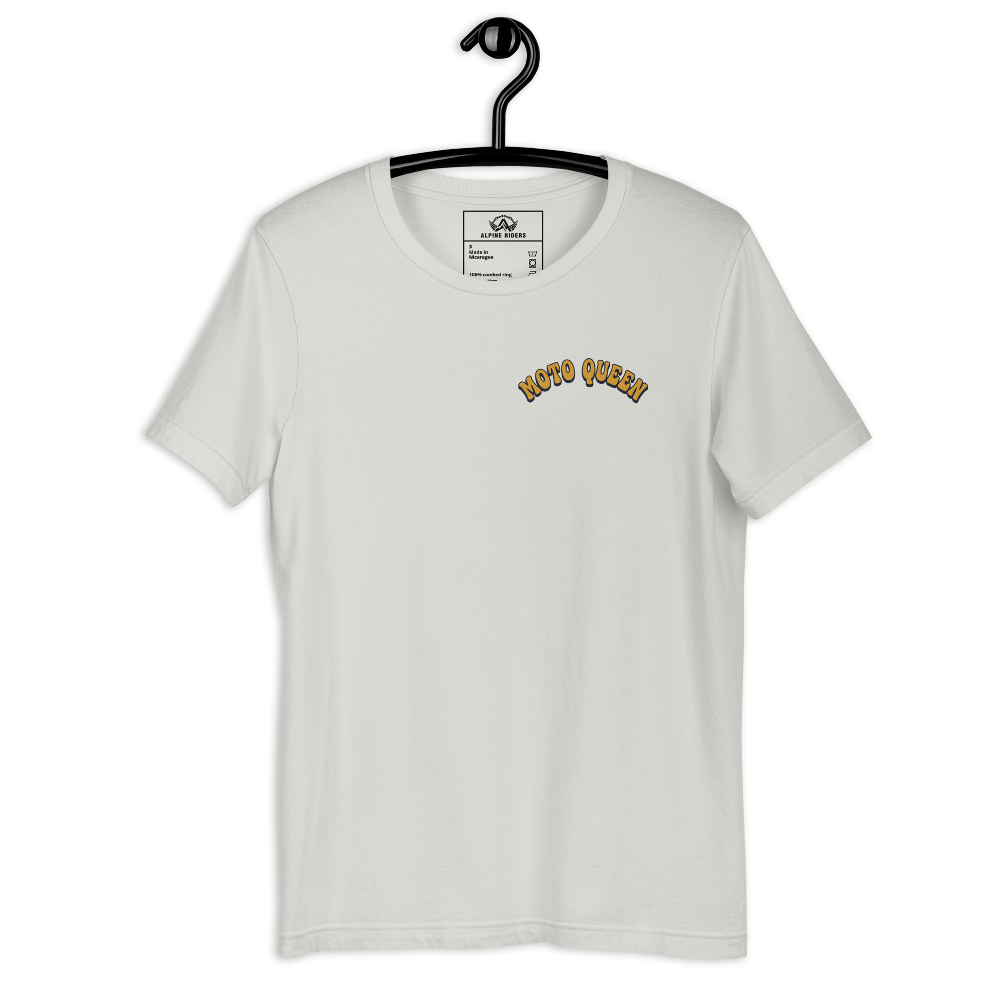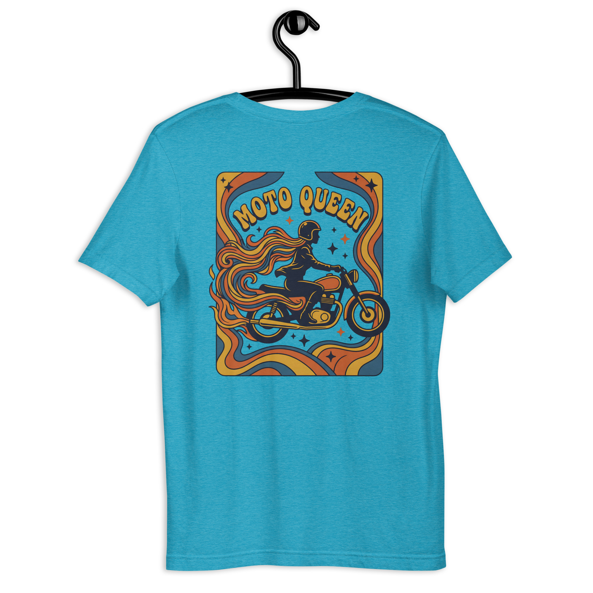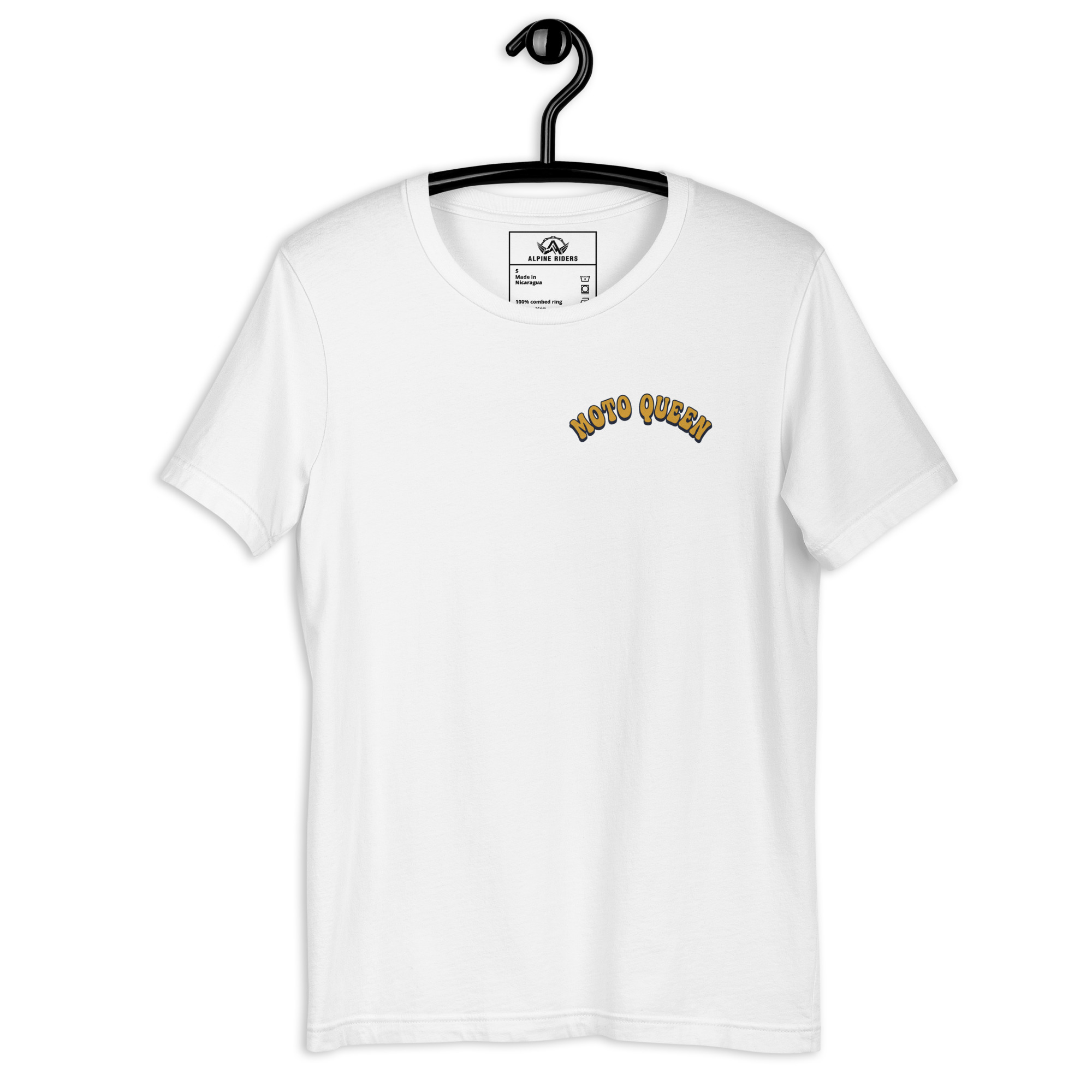 Auf der Vorderseite befindet sich der geschwungene Schriftzug „Moto Queen“.